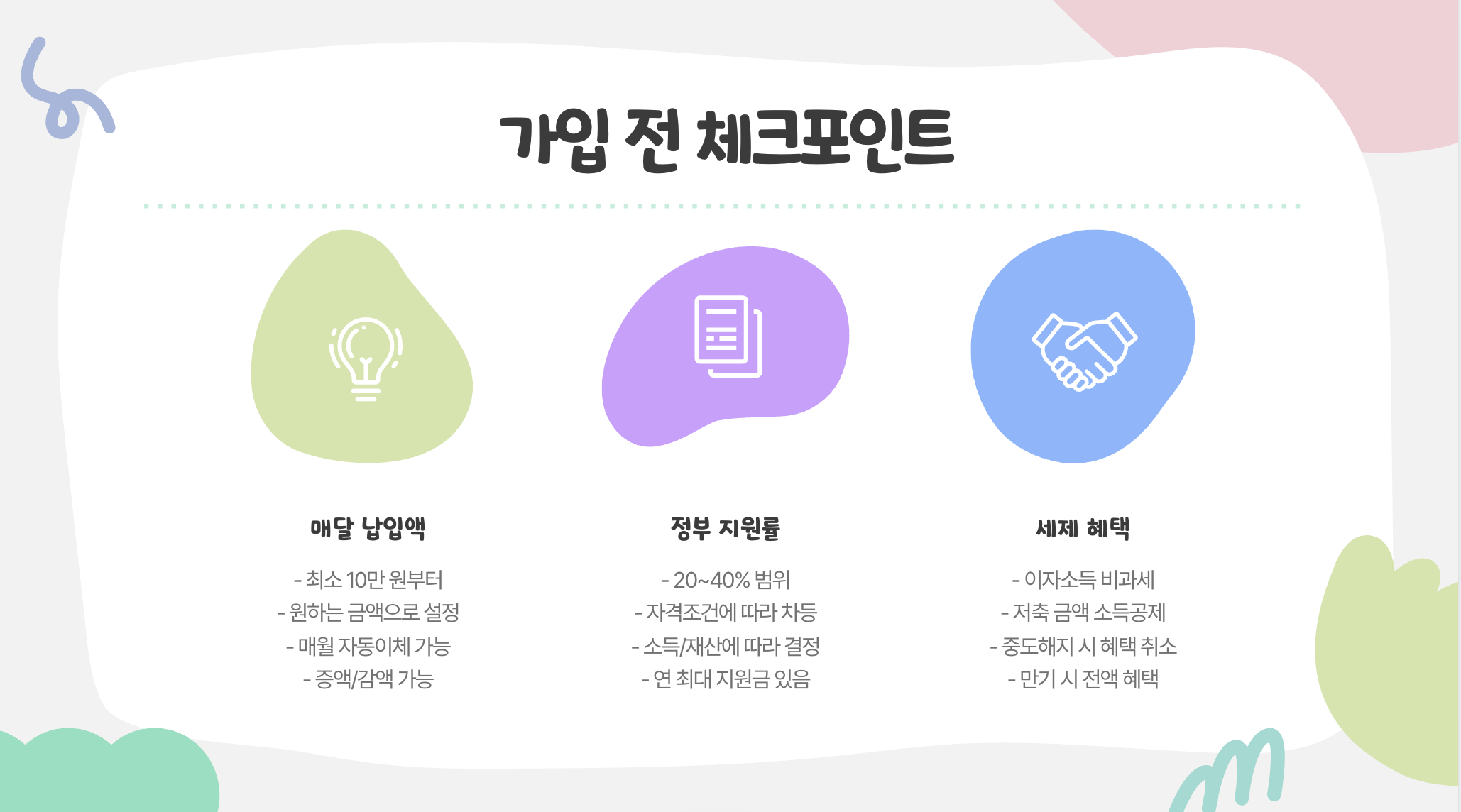 - 정부 매칭 지원을 통해 낮은 리스크로 저축하고 싶은 분